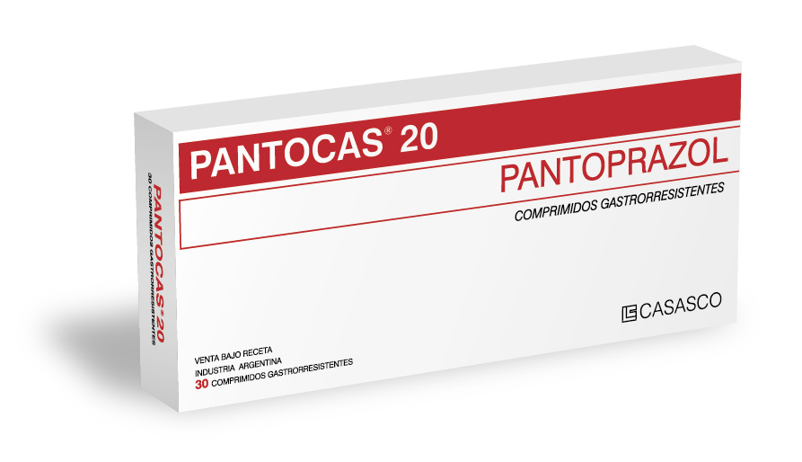 Image removed.       Image removed. Image removed.   Composición: Pantocas 20 mg: cada comprimido gastrorresistente contiene: Pantoprazol (como Pantoprazol sódico sesquihidrato) 20.00 mg; Pantocas 40 mg: cada comprimido gastrorresistente contiene: Pantoprazol (como Pantoprazol sódico sesquihidrato) 40.00 mg; Excipientes c.s. Acción Terapéutica Inhibidor selectivo de la bomba de protones gástrica. Indicaciones Ulcera gástrica y duodenal. Formas moderadas y graves de la esofagitis por reflujo. Tratamiento sintomático del reflujo gastroesofágico leve. Posología Ulcera gástrica o duodenal y esofagitis por reflujo moderada o grave: 1 comprimido de 40 mg 1 vez al día; puede duplicarse la dosis según necesidad. La duración usual del tratamiento es de 4 semanas; puede extenderse como máximo a 8 semanas con las dosis citadas (40 a 80 mg). En pacientes con reflujo gastroesofágico leve se recomienda administrar 1 comprimido de 20 mg por día, preferentemente por la mañana en ayunas, ingiriéndolo con 1 vaso de agua sin masticarlo ni triturarlo. De considerarse necesario pueden administrarse 40 mg 1 vez al día. En pacientes añosos o con trastornos leves de la función hepática o renal no es necesario ajustar la posología. Erradicación de Helicobacter pylori: 40 mg cada 12 horas, asociados a los esquemas antibióticos correspondientes. Contraindicaciones Hipersensibilidad conocida a alguno de los componentes de la formulación. Embarazo y lactancia. Presentación PANTOCAS 20 y 40 mg: Envases con 30 y 60 comprimidos gastrorresistentes.
