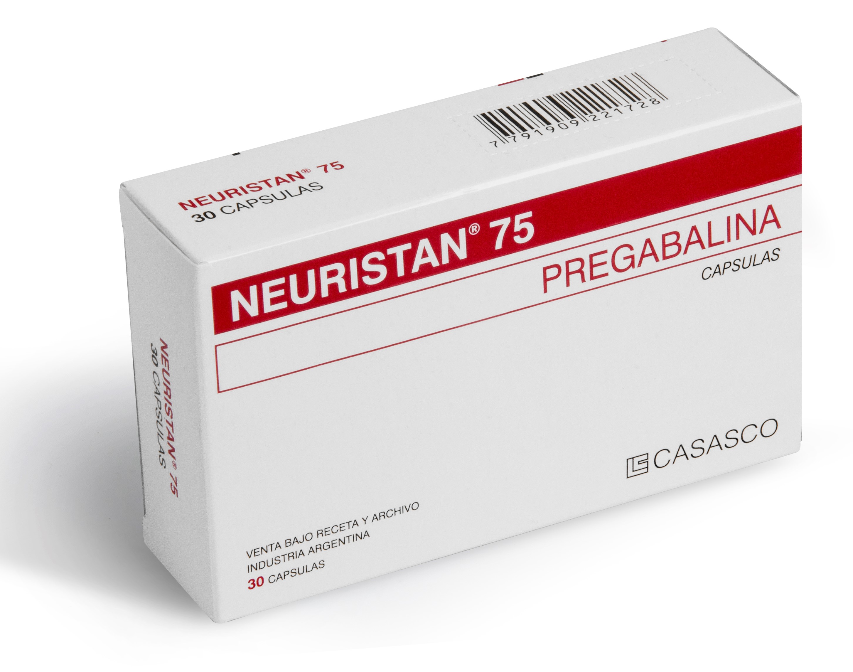 Image removed. Composición NEURISTAN 25 – Cada cápsula contiene pregagalina 25 mg. Excipientes c.s. NEURISTAN 75 – Cada cápsula contiene: pregabalina 75,000 mg. Excipientes cs NEURISTAN 150 – Cada cápsula contiene: pregabalina 150,000 mg. Excipientes: cs  Acción Terapéutica Antiepiléptico.  Indicaciones Dolor neuropático Terapia coadyuvante de las crisis epilépticas parciales con o sin generalización secundaria en adultos. Trastorno de ansiedad generalizada (TAG). Fibromialgia reumática.  Posología El rango de dosis es de 150 a 600 mg al día, fraccionados en dos o tres tomas, con o sin alimentos. Dolor neuropático: Inicio, 150 mg /día; la dosis se puede aumentar hasta 300 mg/día después de 3 a 7 días; dosis máxima 600 mg/ día después de un intervalo adicional de 7 días. Epilepsia: Inicio, 150 mg /día. La dosis se puede aumentar a 300 mg al día después de una semana. Dosis máxima, después de una semana adicional, 600 mg al día. Trastorno de ansiedad generalizada: Inicio150 mg/día; se puede aumentar a 300 mg/día después de una semana y tras otra semana adicional, a 450 mg/ día.; dosis máxima, después de otra semana  600 mg /día. Interrupción del tratamiento con pregabalina Se deberá hacer de forma gradual durante un período mínimo de 1 semana. Pacientes con alteración de la función renal Tabla 1. Ajuste de dosis de pregabalina de acuerdo a la función renal.   Image removed.   TVD = Tres veces al día. DVD = Dos veces al día UVD = Una vez al día Uso en niños y adolescentes (de 12 a 17 años de edad) No se ha establecido la seguridad y eficacia de la pregabalina en niños menores de 12 años ni en adolescentes. Uso en ancianos (mayores de 65 años de edad) Los pacientes ancianos pueden precisar una reducción de la dosis de pregabalina debido a la disminución de la función renal.  Contraindicaciones Hipersensibilidad al principio activo o a alguno de los excipientes.  Presentación Envases con 30 cápsulas   Image removed.