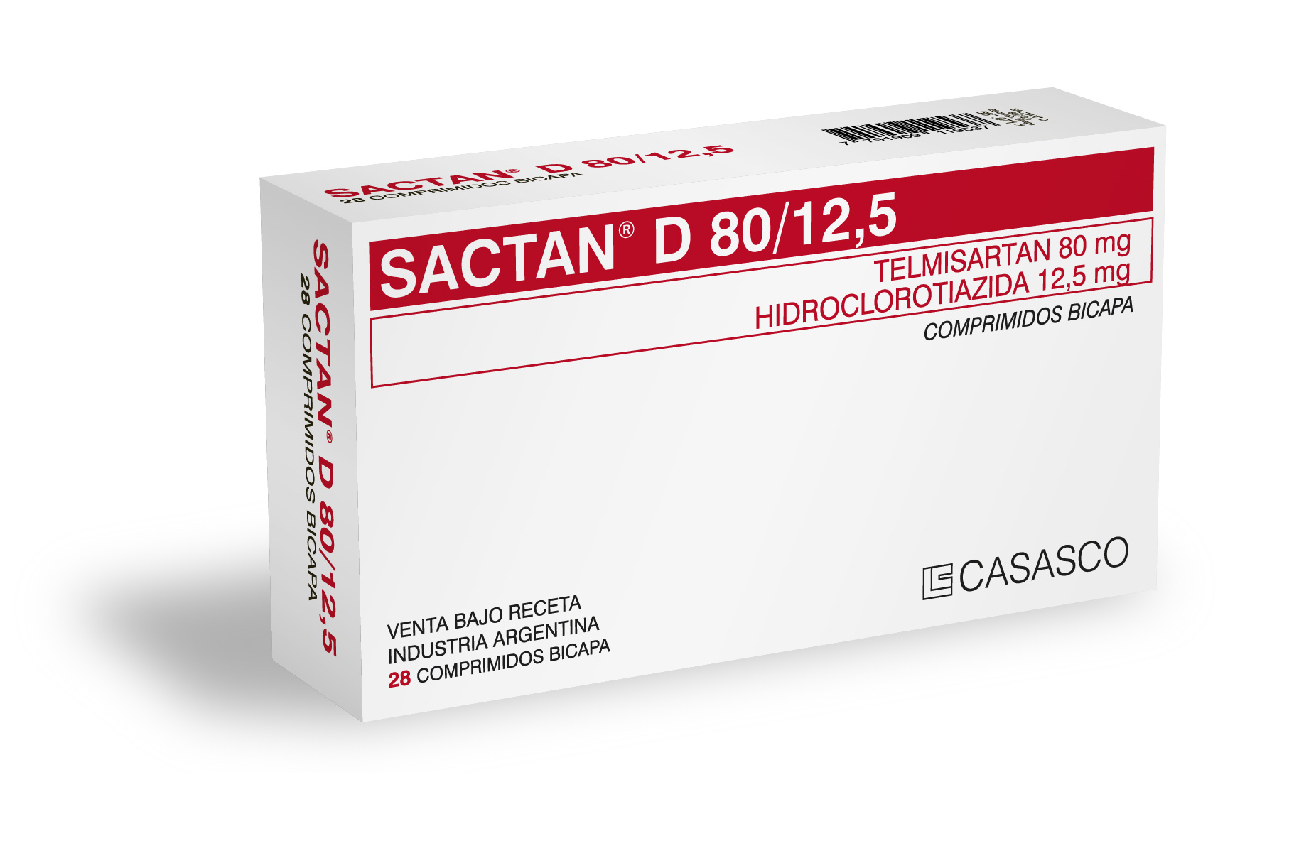 SACTAN D 80/12,5: Cada comprimido contiene: Telmisartan 80,000 mg; Hidroclorotiazida 12,500 mg; Excipientes: c.s