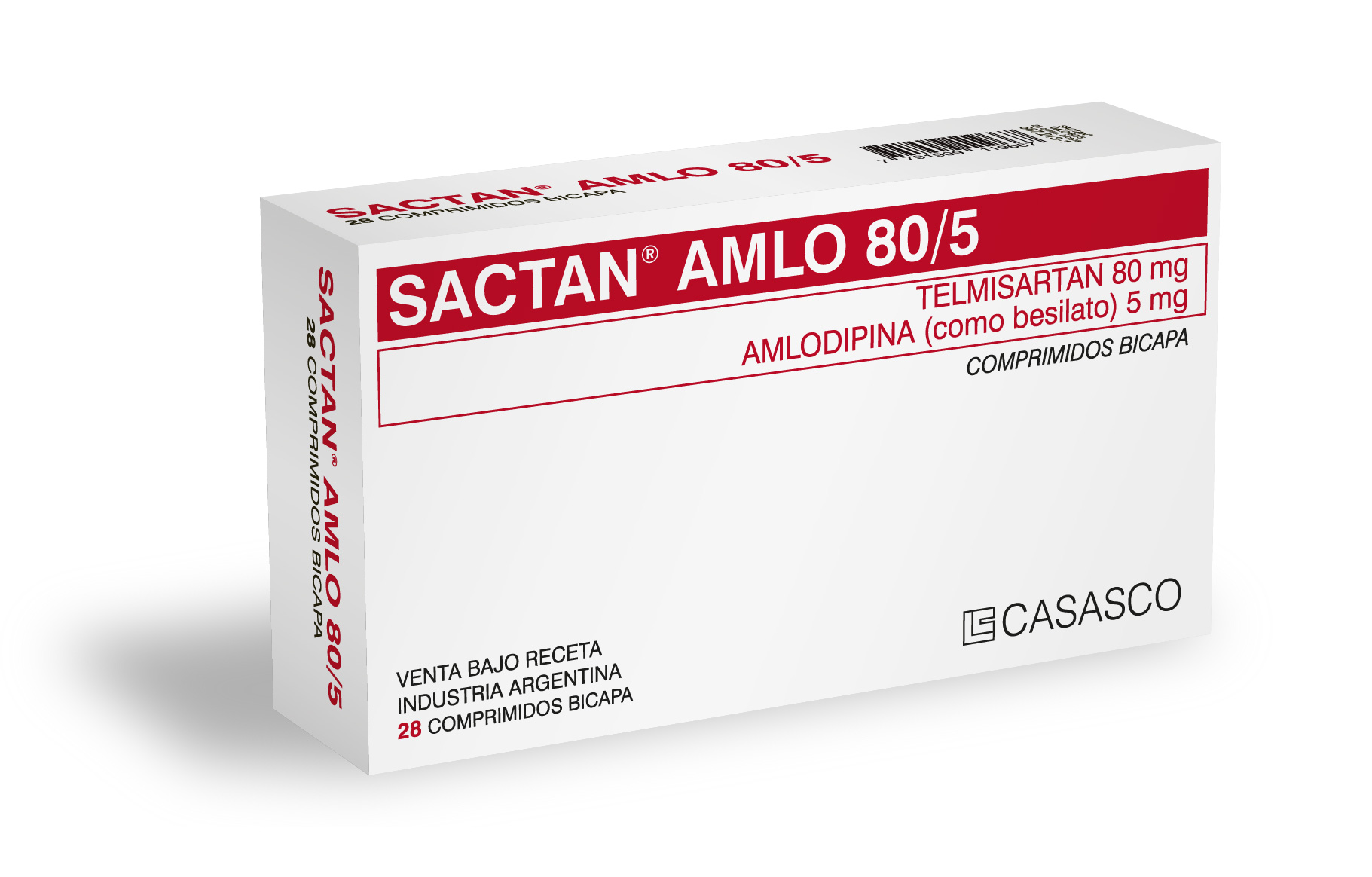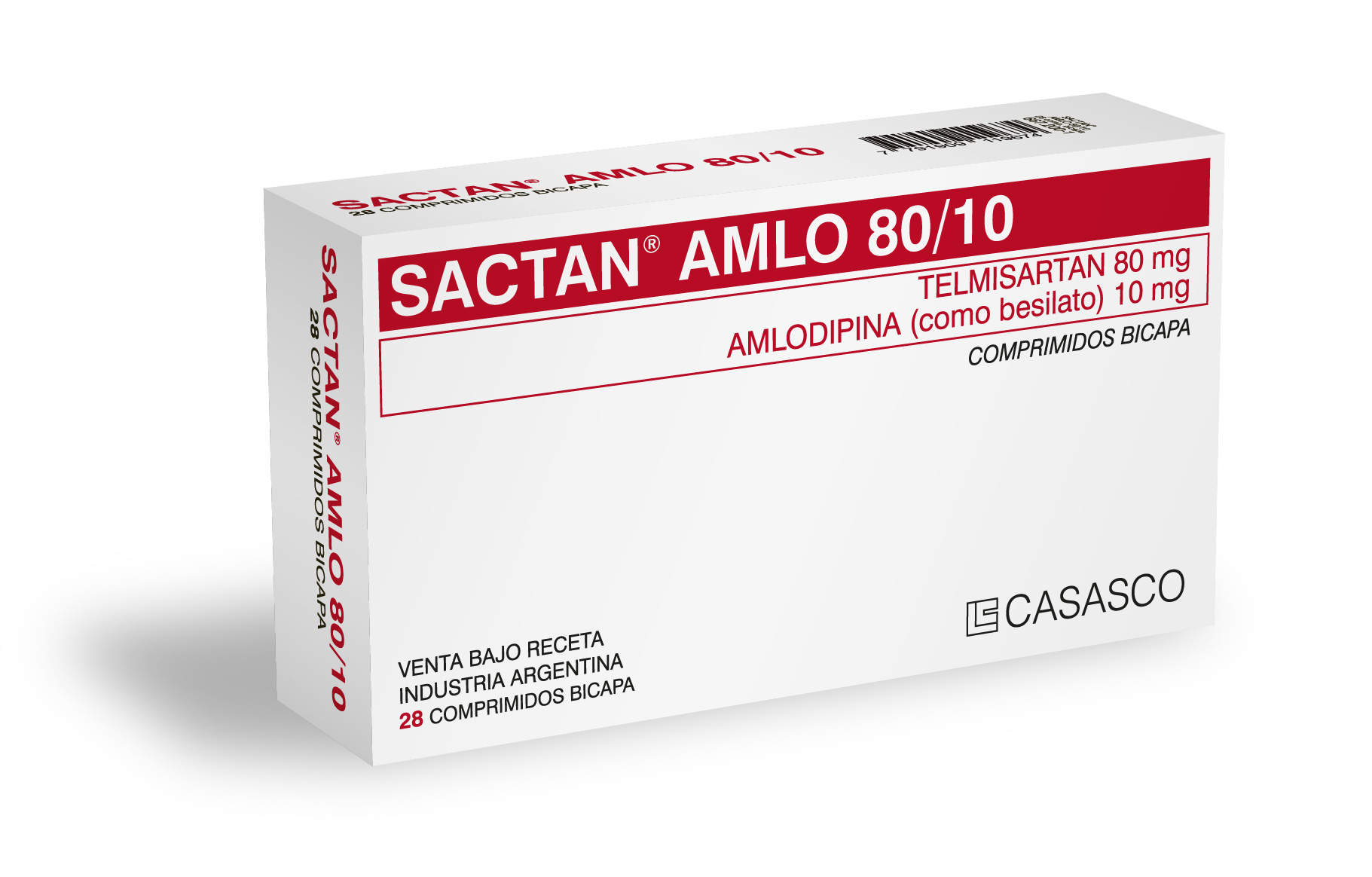Image removed.       Image removed.Image removed.Image removed. Fórmula SACTAN AMLO 40/5: Cada comprimido bicapa contiene: Telmisartan 40,000 mg; Amlodipina (como Besilato) 5,000 mg; Excipientes c.s SACTAN AMLO 80/5: Cada comprimido bicapa contiene: Telmisartan 80,000 mg; Amlodipina (como Besilato) 5,000 mg; Excipientes c.s SACTAN AMLO 80/10: Cada comprimido bicapa contiene: Telmisartan 80,000 mg; Amlodipina (como Besilato) 10,000 mg; Excipientes c.s   Acción Terapéutica Antihipertensivo. Indicaciones Tratamiento de la hipertensión esencial. Terapia adicional SACTAN AMLO está indicado en pacientes cuya presión sanguínea no está adecuadamente controlada con monoterapia de telmisartán o amlodipina. Terapia inicial También puede utilizarse SACTAN AMLO como terapia inicial en pacientes que posiblemente necesiten drogas múltiples para alcanzar los límites deseados de presión sanguínea. Posología y Modo de Administración Adultos SACTAN AMLO debe tomarse una vez al día. La dosis inicial usual de SACTAN AMLO es de 40/5 mg una vez al día. Los pacientes que requieren mayores reducciones de presión sanguínea pueden iniciar el tratamiento con SACTAN AMLO 80/5 mg una vez al día. Después de 2 semanas de tratamiento, la dosis puede titularse hasta un máximo de 80/10 mg una vez al día. SACTAN AMLO puede administrarse con otras drogas antihipertensivas. Poblaciones especiales Insuficiencia renal No se requiere ajuste de la posología en pacientes con insuficiencia renal. Insuficiencia hepática En pacientes con insuficiencia hepática leve a moderada SACTAN AMLO debería administrarse con precaución. La posología de telmisartán no debería exceder los 40 mg una vez al día. Pacientes ancianos en el paciente anciano, se recomiendan pautas posológicas normales de amlodipina. Población pediátrica El uso de SACTAN AMLO no se recomienda en pacientes menores de 18 años debido a la falta de datos sobre su seguridad y eficacia.   Contraindicaciones