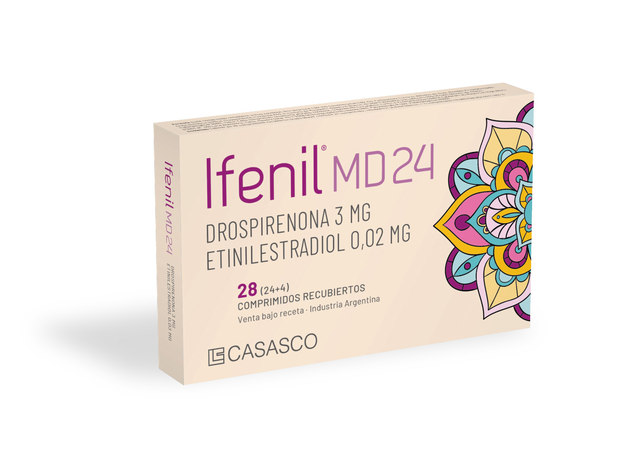 Image removed.     Image removed.Fórmula Cada comprimido recubierto activo contiene: Drospirenona 3,00 mg - Etinilestradiol 0,02 mg. Excipientes: C.S. Acción Terapéutica Anovulatorio. Indicaciones Anticoncepción hormonal. Tratamiento de los síntomas del desorden disfórico premenstrual (PMDD) en aquellas mujeres que opten por usar un anticonceptivo oral. La efectividad en el tratamiento del PMDD no se ha determinado cuando se usa por más de tres ciclos menstruales. Tratamiento del acné moderado sólo en aquellas mujeres que opten por usar anticoncepción oral, a partir de los 14 años de edad, que hayan tenido su menarca, y que no tengan contraindicaciones para anticoncepción oral. Posología y Modo de Administración Los comprimidos deben ingerirse todos los días aproximadamente a la misma hora, con una cantidad suficiente de líquido. Los comprimidos se extraen siguiendo el sentido de la flecha indicada en el blíster, comenzando siempre con el primer comprimido de color blanco y, al finalizar éstos, al día siguiente y sin ninguna interrupción se toma un comprimido por día de color rojo hasta finalizar el envase. Debe ingerirse diariamente un comprimido durante 28 días consecutivos. Al día siguiente de la toma del último comprimido de un envase se comienza con la ingestión de los comprimidos del blíster siguiente. Por lo general un sangrado similar al menstrual se produce luego de la toma del último comprimido de color rojo. Cómo proceder en caso de vómitos o diarrea Si se sufre de vómitos o diarrea en las primeras 3 a 4 horas después de la ingestión de uno de los comprimidos de color blanco es factible que el organismo no absorba completamente el principio activo. Por ello, debe ingerirse a la brevedad otro comprimido. Contraindicaciones Insuficiencia renal. Disfunción hepática. Insuficiencia adrenal. Tromboflebitis o desórdenes tromboembólicos actuales o antecedentes de los mismos. Coronariopatía o enfermedad cerebro vascular. Valvulopatía cardíaca con riesgo trombogénico. Hipertensión severa. Diabetes mellitus con complicación vascular. Cefalea con síntomas focales neurológicos. Cirugía mayor con inmovilización prolongada. Cáncer de mama conocido o sospechado. Cáncer de endometrio o cualquier otra neoplasia estrógeno dependiente conocida o sospechada. Sangrado genital anormal de origen no diagnosticado. Litiasis biliar. Embarazo. Tumor hepático benigno o maligno o enfermedad hepática activa. Fumadora de 15 o más cigarrillos por día y mayor de 35 años. Hipersensibilidad a cualquier componente de la fórmula. Esta especialidad medicinal está libre de gluten. Presentación Envases conteniendo 1 blíster x 28 comprimidos recubiertos.