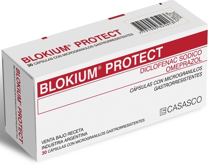 Acción Terapéutica Analgésico, antiinflamatorio y antipirético no esteroideo. Inhibidor de la secreción ácida gástrica. Indicaciones Tratamiento sintomático de la artritis reumatoidea, osteoartritis y otros procesos inflamatorios en pacientes con riesgo de presentar complicaciones gastrointestinales inducidas por AINE. Posología Posología media: 1 cápsula cada 12 hs. (con desayuno y cena). Dosis máxima recomendada: diclofenac 150 mg (2 cápsulas por día). Modo de administración: ingerir las cápsulas enteras con una cantidad suficiente de líquido. Contraindicaciones Hipersensibilidad conocida a alguno de los componentes de la formulación. Embarazo. Lactancia. Niños. Antecedentes de crisis asmáticas, urticaria u otras reacciones alérgicas asociadas con la administración de aspirina u otros AINE. Úlcera gastroduodenal activa, insuficiencia hepática o renal severa. Presentación Envases con 10 y 30 cápsulas.